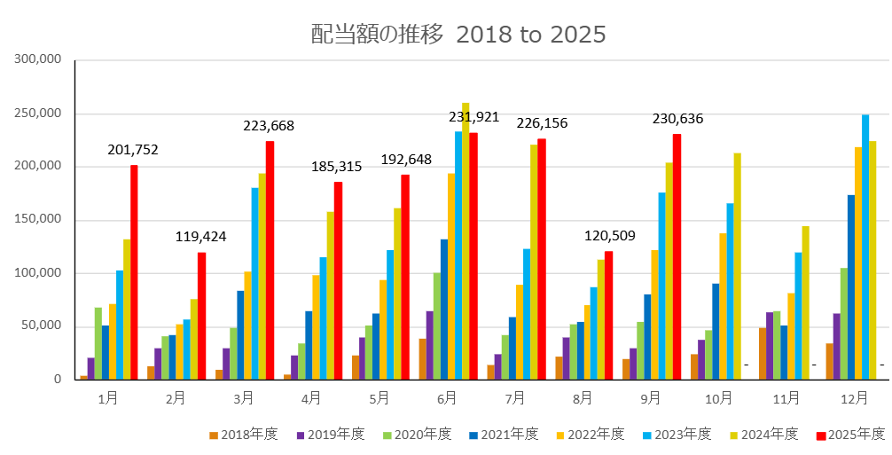 年度合計では240万円(月額20万円)を目指していますが少し厳しそうです。まあでもここまでよく積みあがってきたものです。